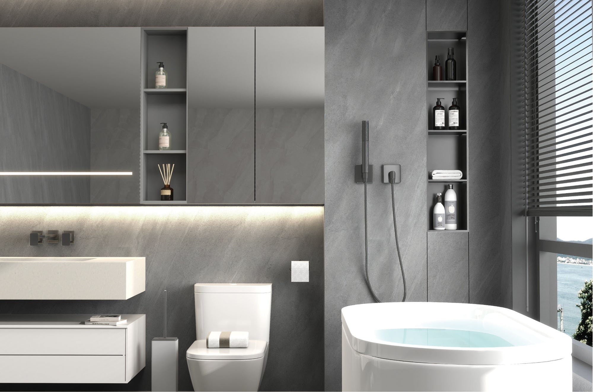 utilizados na decoração de interiores, em casas de banho, cozinhas, espaços comerciais e