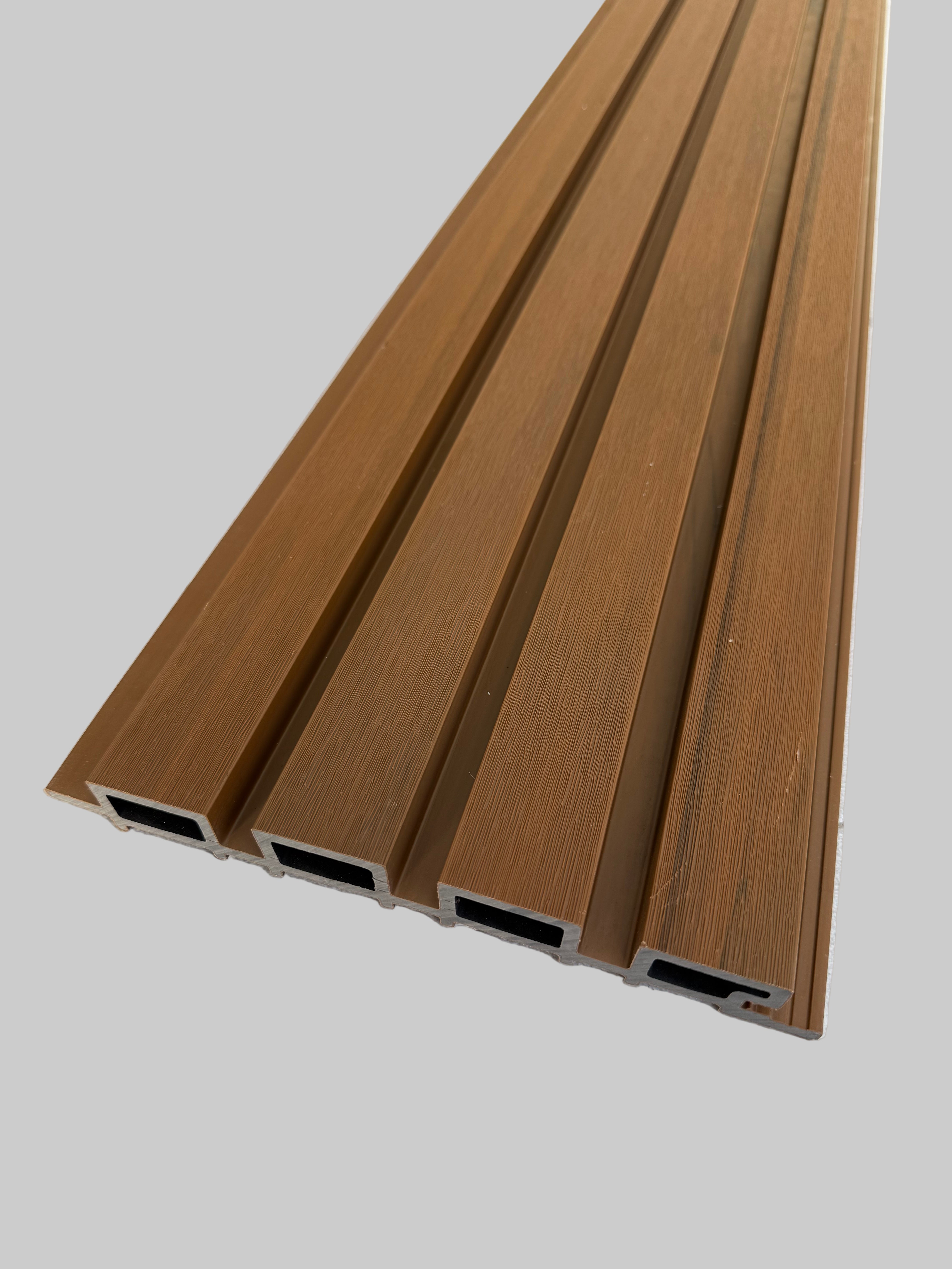 A sua superfície ripada cria profundidade visual e modernidade, trazendo um acabamento premium a qualquer projeto residencial ou comercial. O WPC não apodrece, não lasca, não necessita de pintura e apresenta excelente desempenho contra intempéries, raios UV e humidade — tornando-o uma alternativa superior à madeira tradicional.